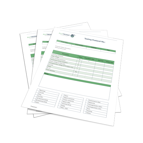 The test protocol sheet shows that every task undertaken by PLCTRONIC is undertaken by maintenance personnel who are seasoned in servomotor upkeep and trained in safety protocols and maintenance procedures.